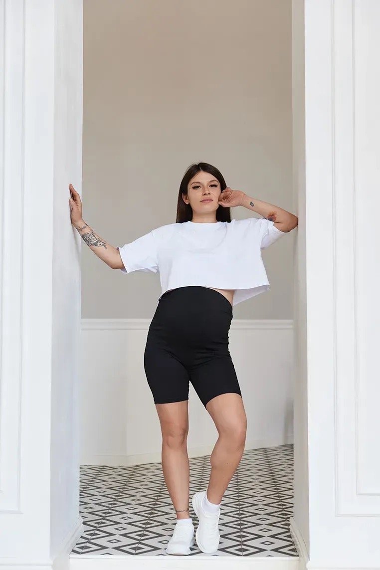 - Подовженим футболкам. Топи або укорочені моделі - не варіант для майбутніх мам. Їм слід ретельно берегтися від протягів, щоб зберегти своє здоров'я. Тому футболка обов'язково повинна прикривати поперек і живіт.