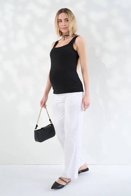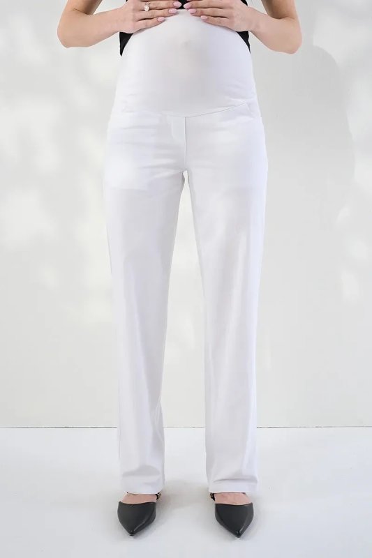 Білі прямі брюки з високою талією для вагітних зі стрейч-бавовни Isla