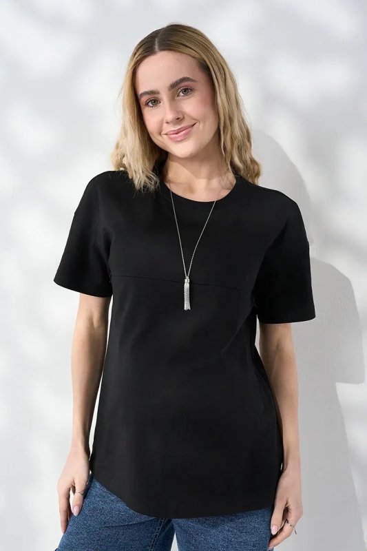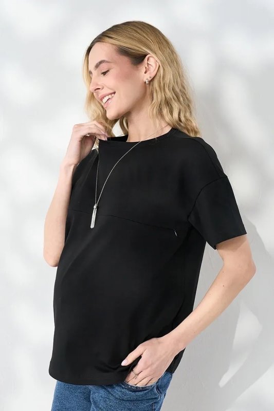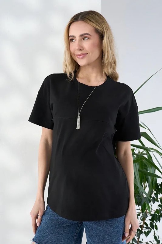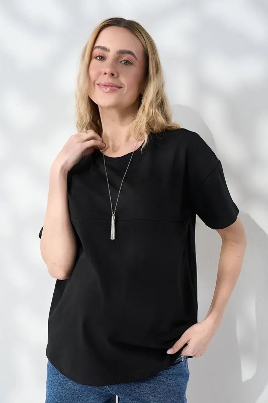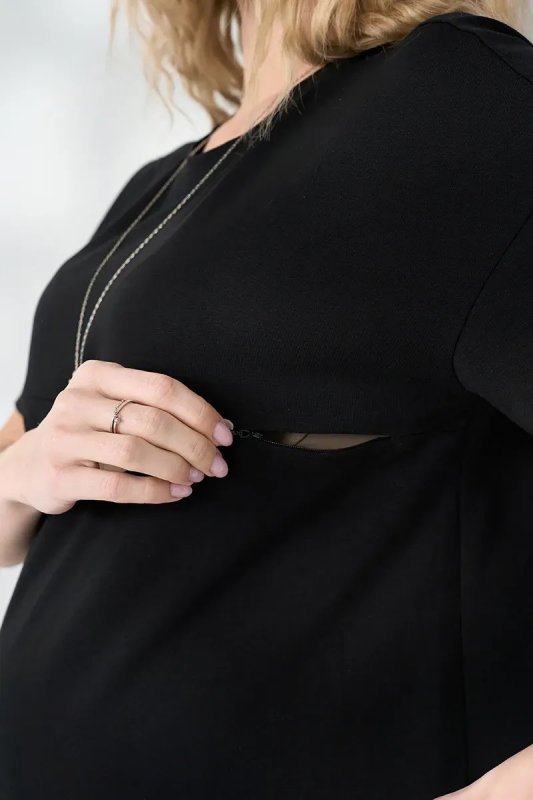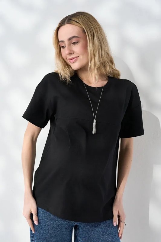 Чорна футболка для вагітних і годуючих із секретом для годування Goldie