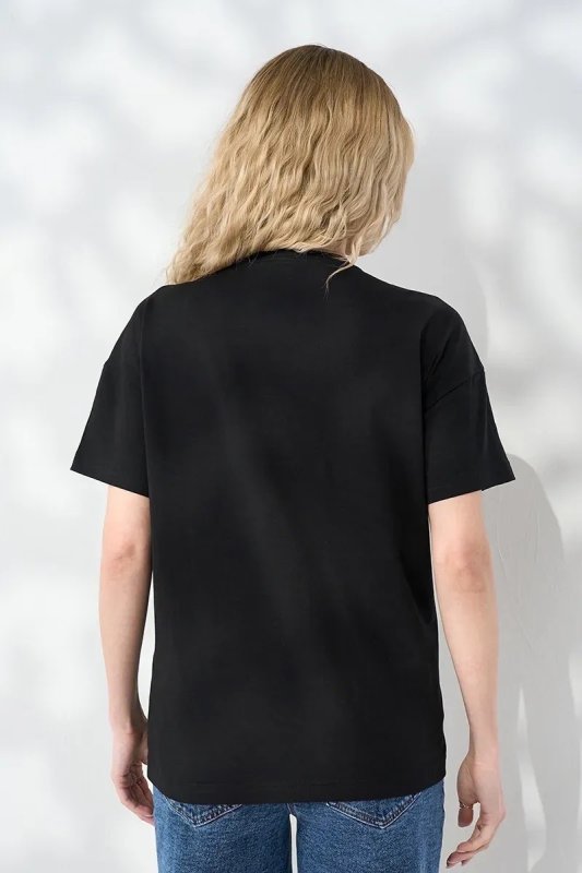 Крій Силует оверсайз вільно облягає фігуру на будь-якому терміні і комфортно сидить після пологів. Чорний колір — універсальна база, яка поєднується з будь-чим у гардеробі.