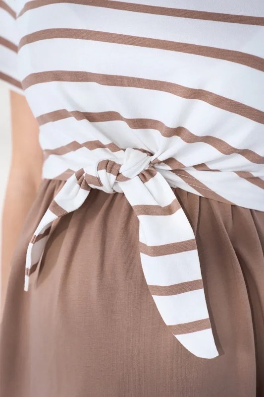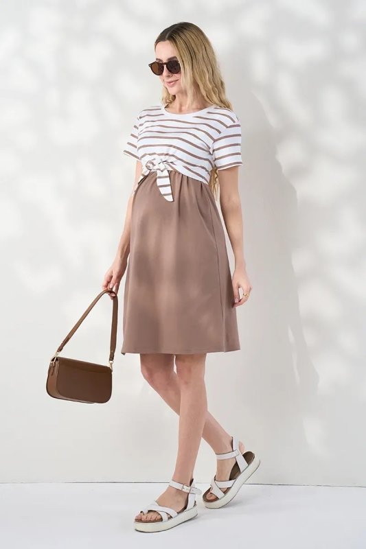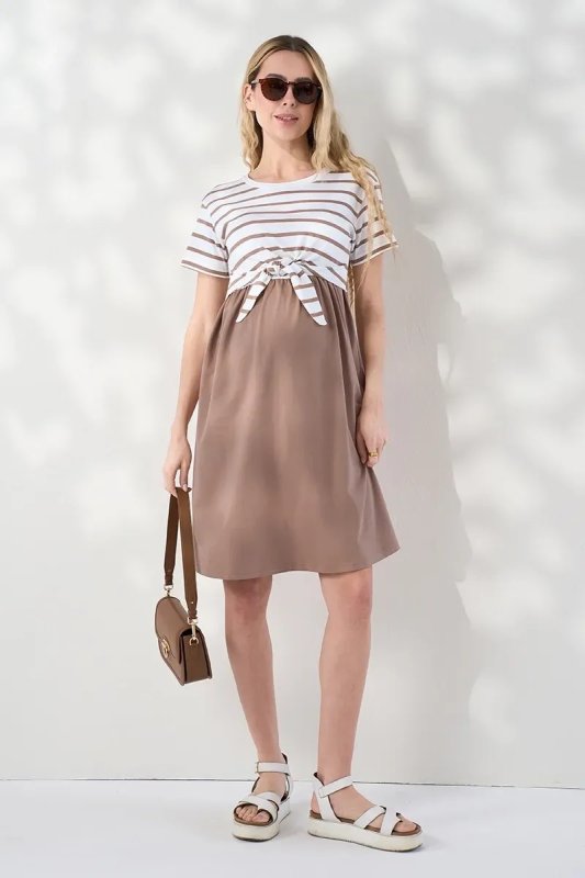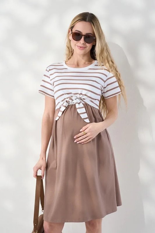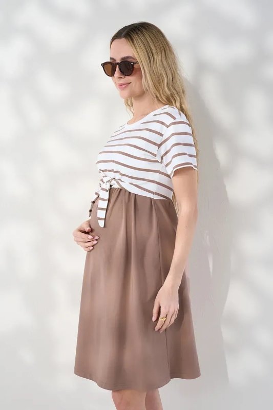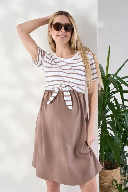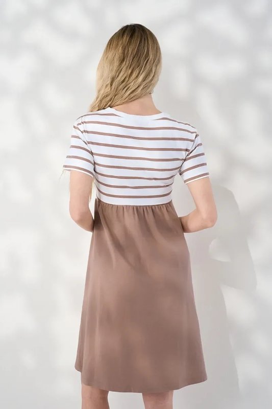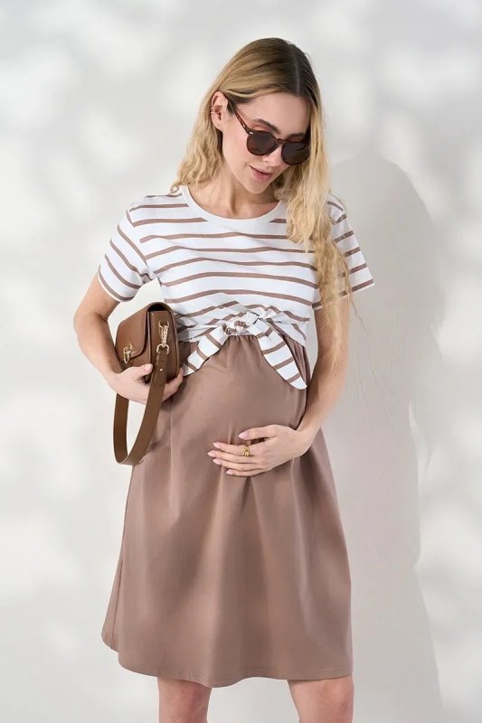 Двокольорова сукня в смугу капучино для вагітних та годуючих Becky