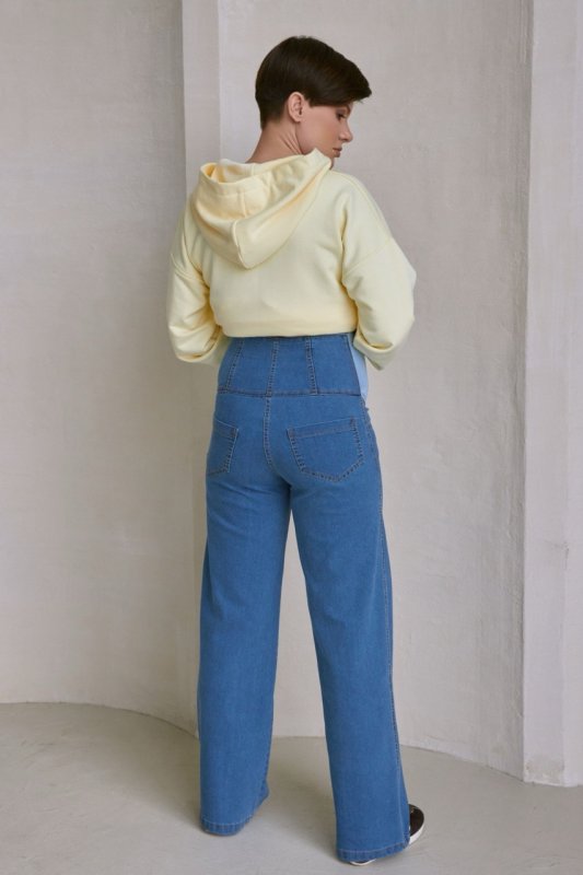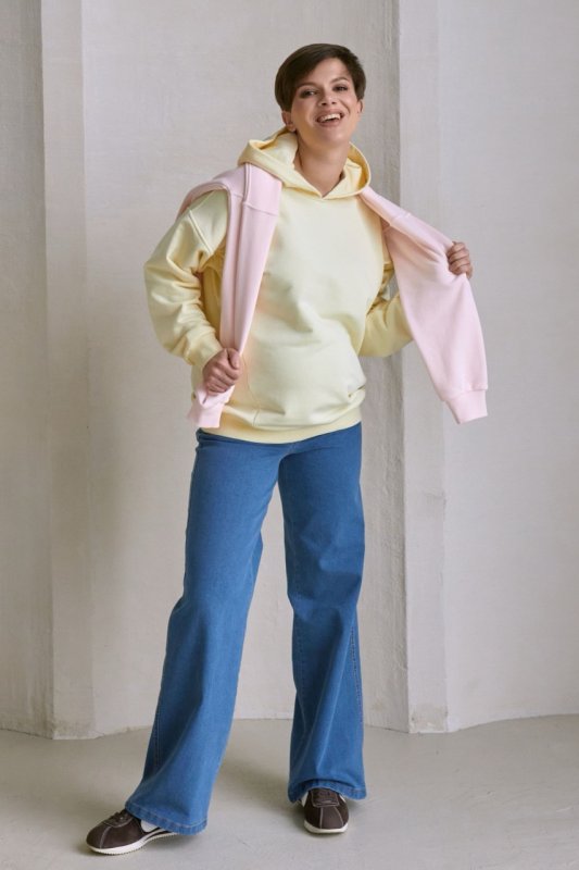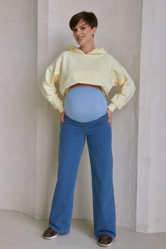 Класичний відтінок деніму легко поєднується з футболками, худі, сорочками та світшотами, створюючи стильні й зручні образи для майбутньої мами. Ці джинси стануть універсальною річчю у гардеробі вагітної жінки, поєднуючи комфорт і сучасний стиль.