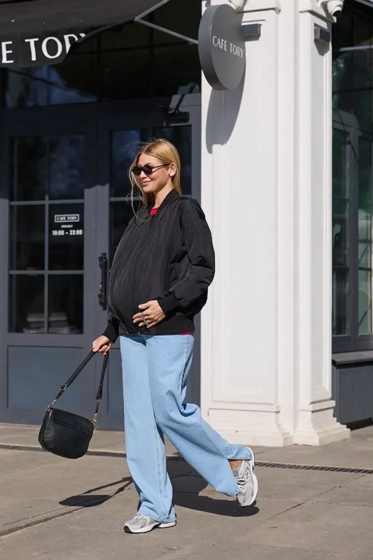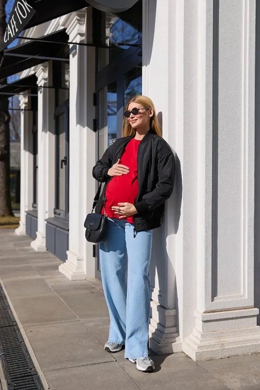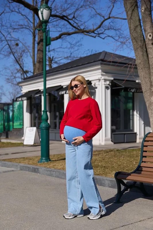 Прямі джинси з розрізами, які комфортно сидять на будь-якому терміні вагітності. Пояс із перфорованою резинкою та ґудзиком регулюється під будь-який об'єм животика — від першого триместру до останніх тижнів.