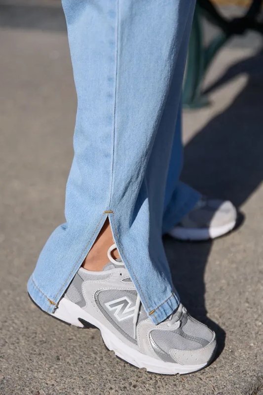Крій і деталі Прямий крій від стегна візуально витягує силует, а розрізи внизу додають образу трендовості та легкості. Пояс із еластичної тканини м'яко підтримує животик без здавлювання. Блакитний колір легко поєднується з будь-яким взуттям — кросівками, балетками, лоферами або підборами — і підходить як для повсякденних, так і для більш стильних образів.