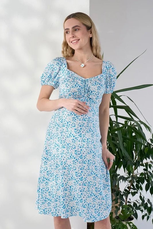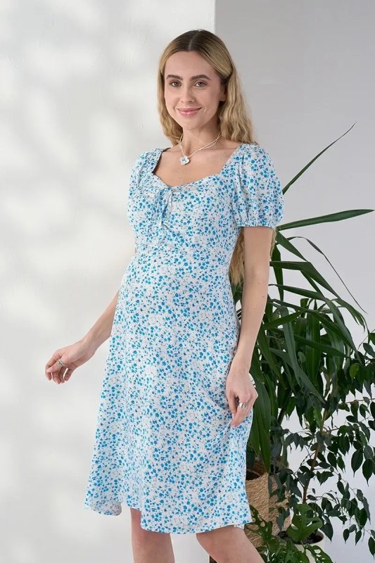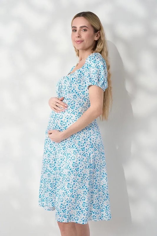 Елегантна сукня для вагітних та годуючих з блакитними квітами Eileen
