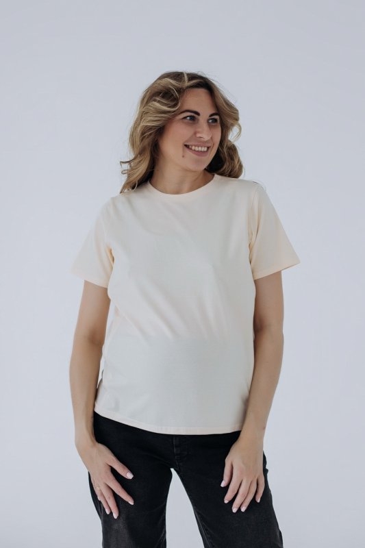 Універсальна бавовняна футболка для майбутніх мам і мам, які годують. Модель вільного крою з достатнім простором для росту живота, для швидкого та непомітного годування передбачено секрет у вигляді замаскованих змійок у нагрудних рельєфах. Відмінно сидить і після вагітності