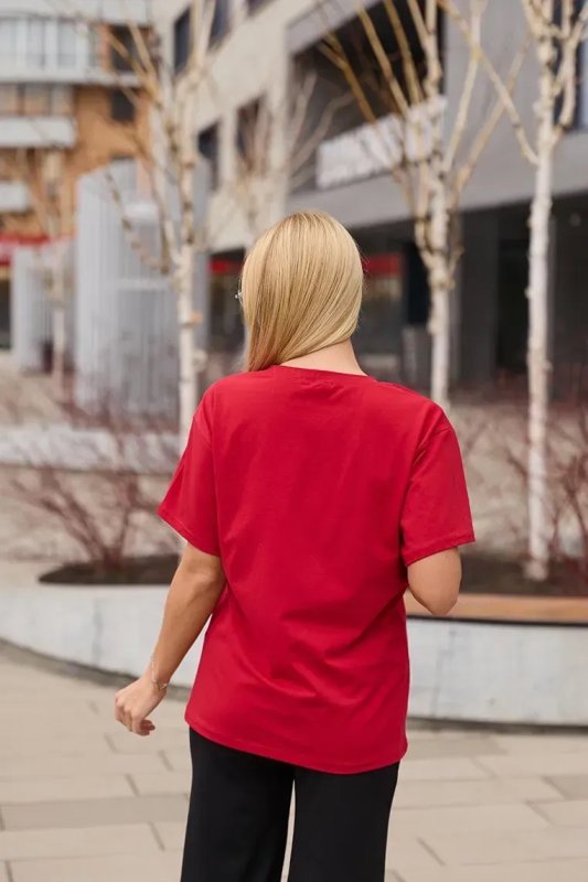 Футболка має короткі рукави та класичний круглий виріз горловини. Довжина виробу повністю закриває стегна, що дозволяє легко поєднувати її з легінсами або велосипедками.