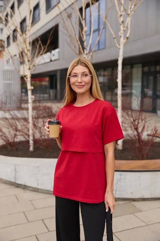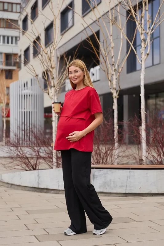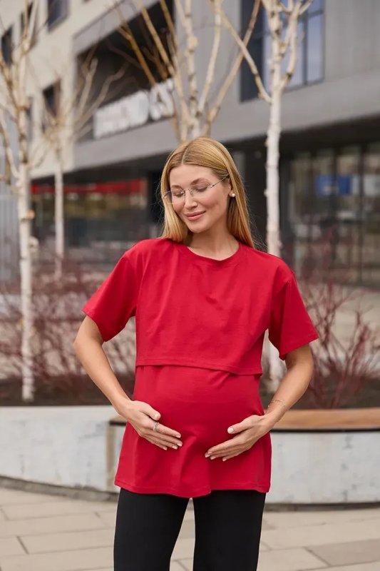Футболка для вагітних і годуючих виконана з еластичної тканини з високим вмістом бавовни, що забезпечує комфорт протягом усього дня. Матеріал приємний на дотик, м’який і не просвічується.