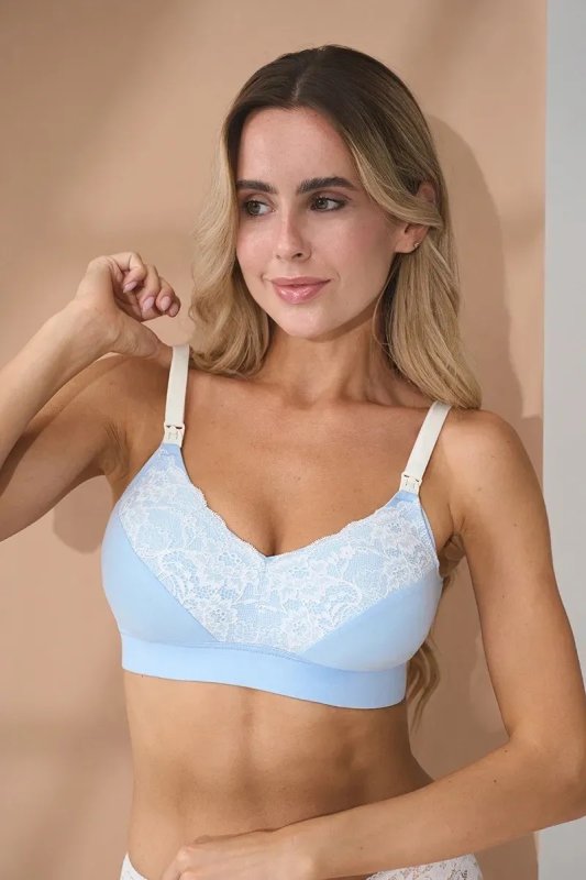 Блакитний бюстгальтер для вагітних та годуючих з мереживом Lada