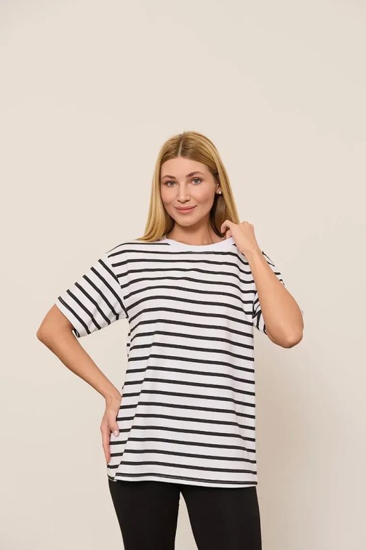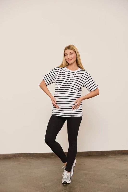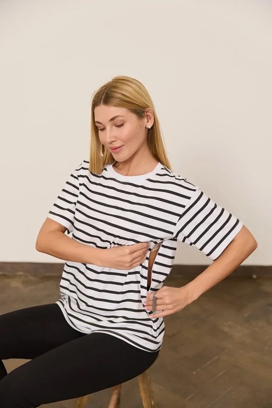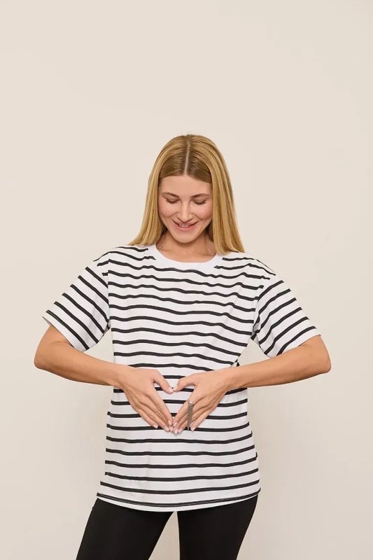Бавовняна футболка для вагітних і годуючих Ankara — біла з чорним