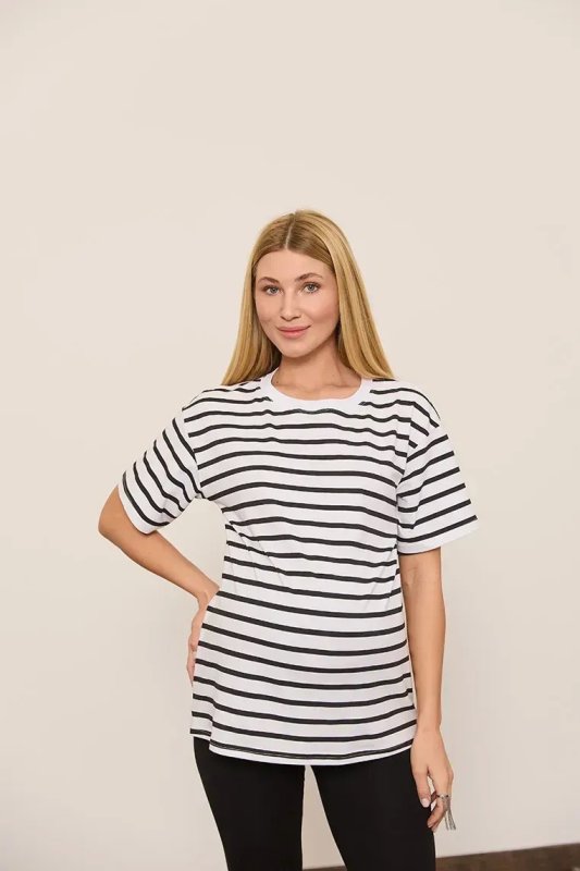 Футболка для вагітних і годуючих виконана з еластичної тканини з високим вмістом бавовни, що забезпечує комфорт протягом усього дня. Матеріал м’який, приємний до тіла та не просвічується.