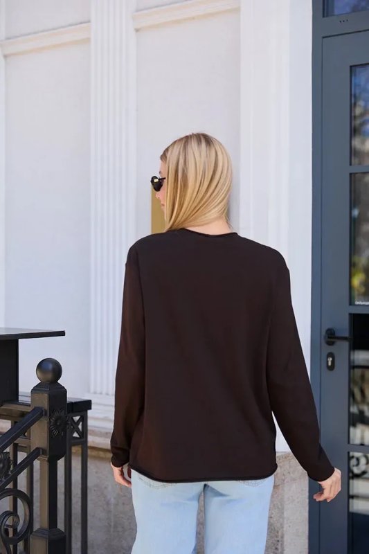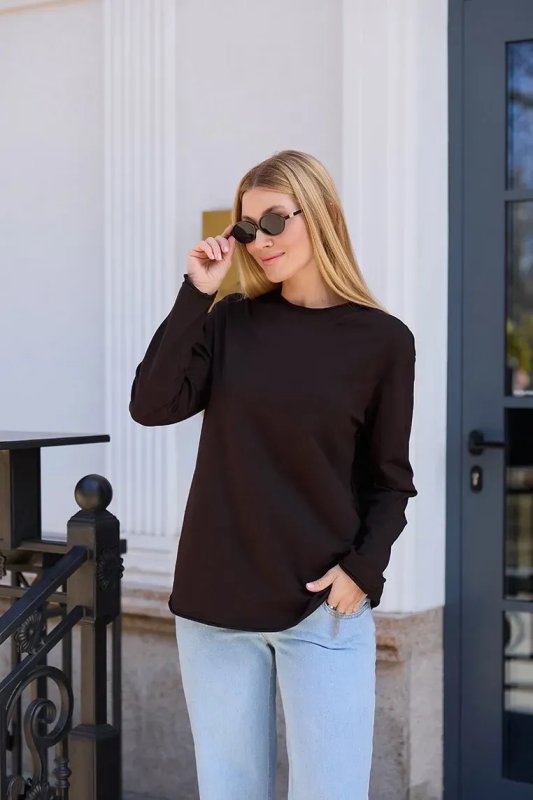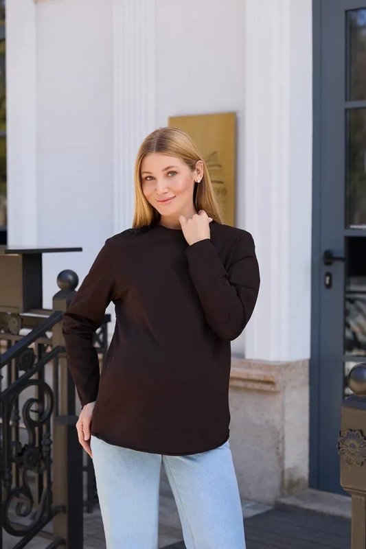 Матеріал М'який бавовняний трикотаж з невеликою часткою еластану — приємний до тіла, дихаючий та еластичний. Гладка фактура не подразнює шкіру і добре тримає форму після прання. Шоколадний відтінок — тепла і універсальна база, яка легко поєднується з джинсами, легінсами та спідницями.