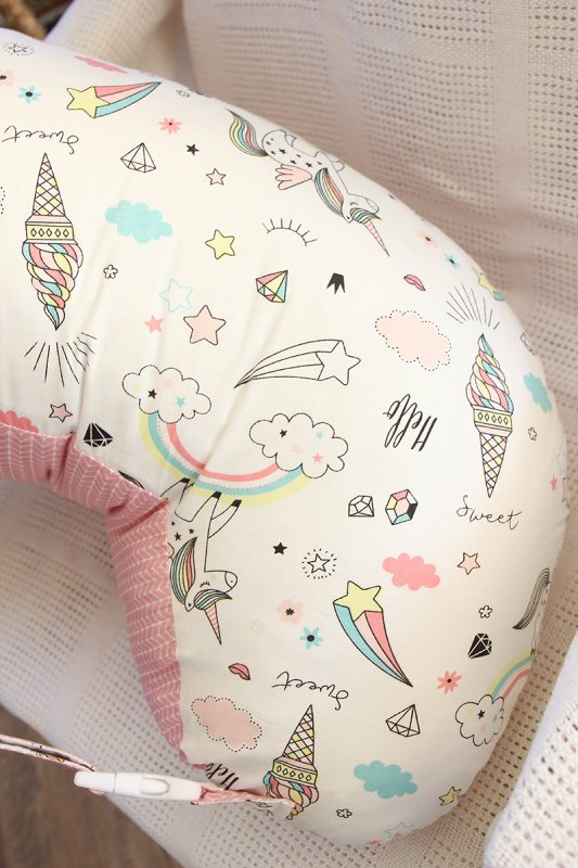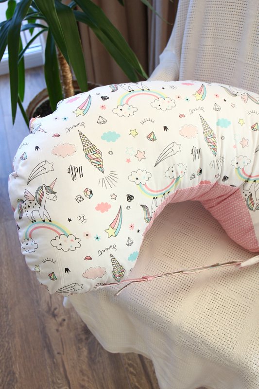 Наша подушка для годування має унікальну конструкцію. Пройшовши на особистому досвіді материнства незручність більшості стандартних подушок, наша власниця внесла доробки, які допомагають розвантажити спину і дозволяють звільнити руки молодій мамі:
