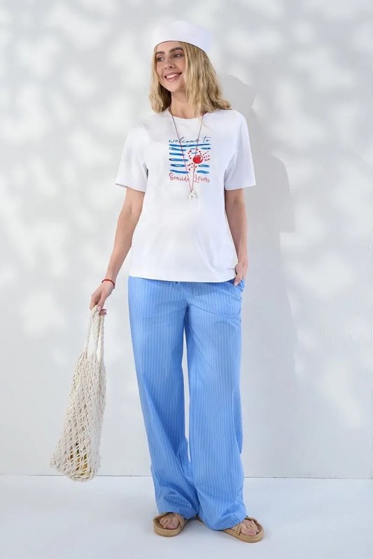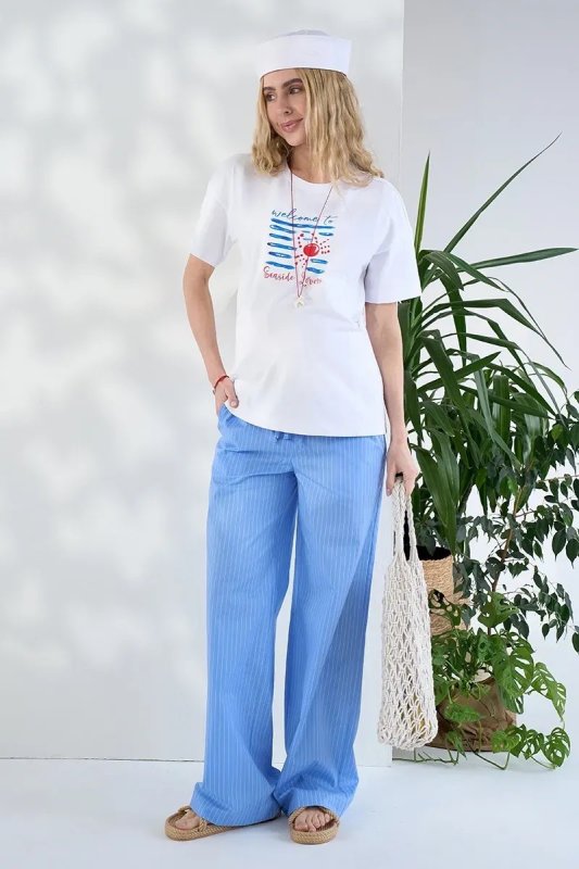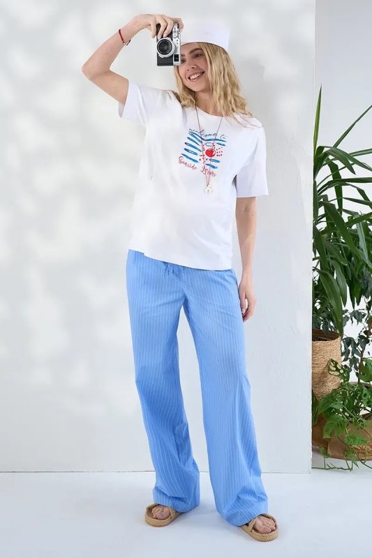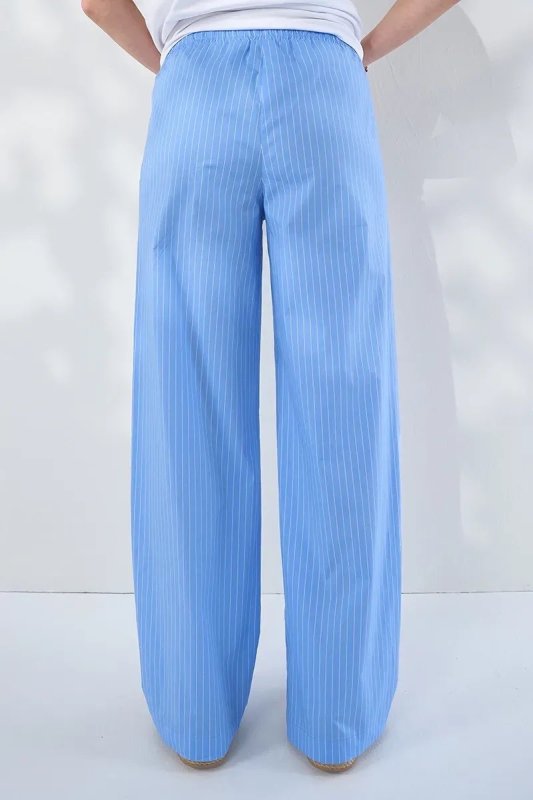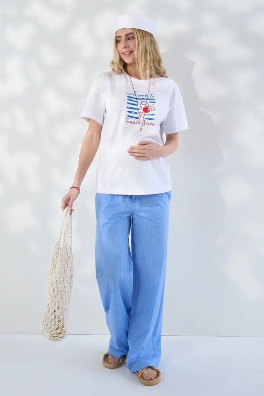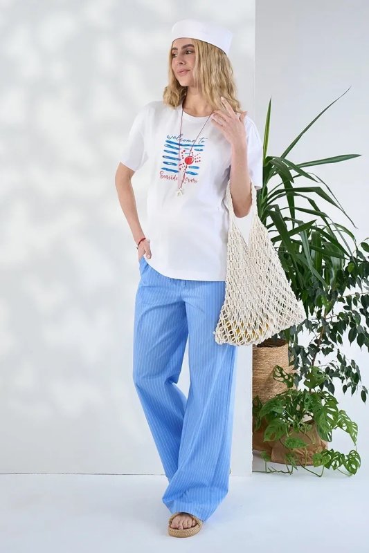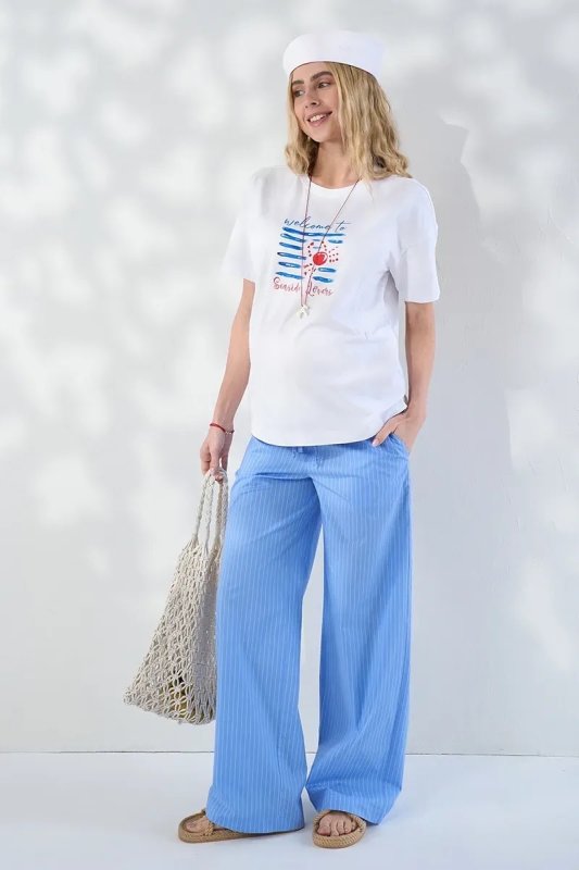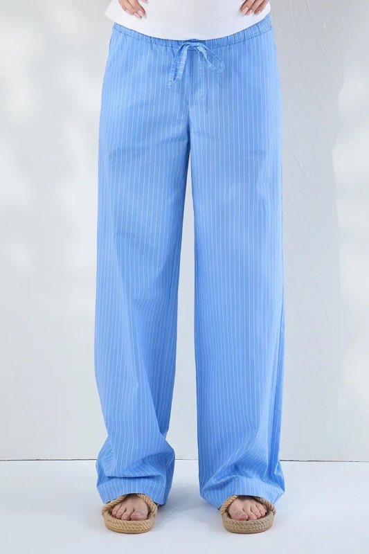 Прямі брюки для вагітних зі стрейч-попліну в смужку Moana — блакитні