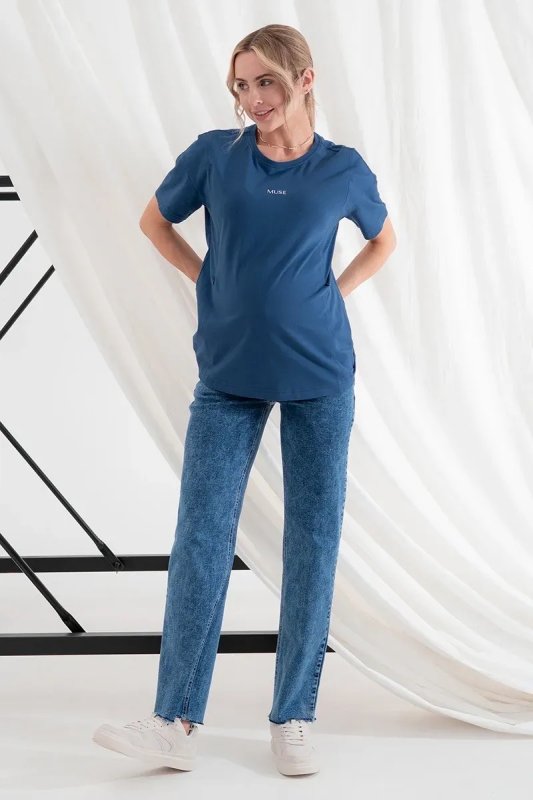 Сині прямі джинси з поясом на живіт для вагітних Tally