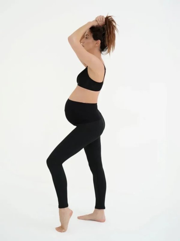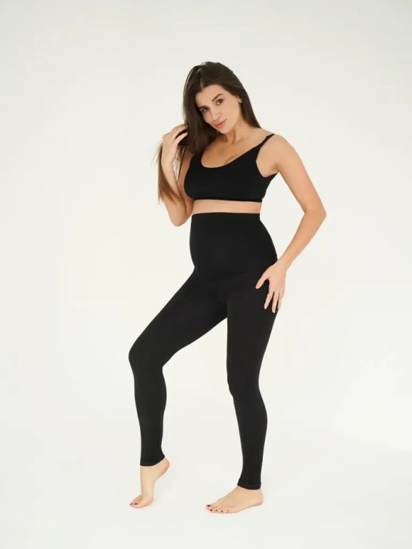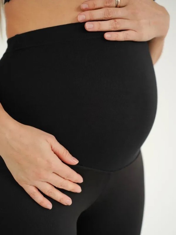 • широкий трикотажний пояс та гумка вздовж нього добре регулюють посадку виробу протягом усієї вагітності та дозволяють носити легінси після народження дитини.