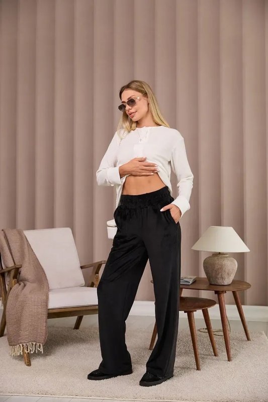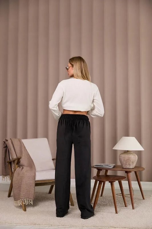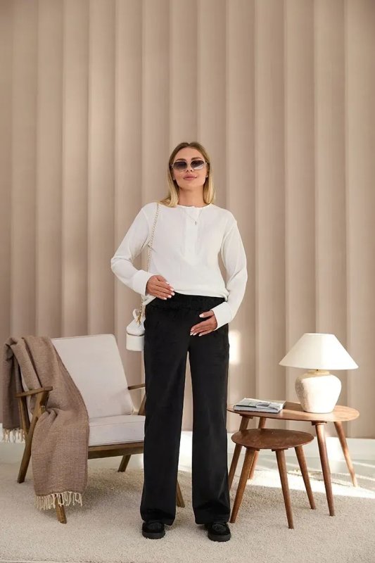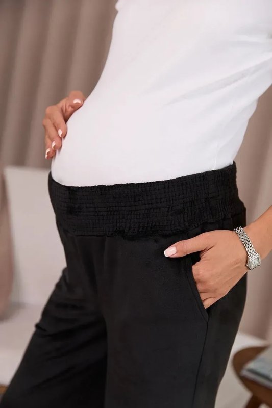- пояс в штанах виготовлений з тієї ж тканини, що й самі штанці. Він прошитий на спеціальній машинці тонкою, еластичною ниткою-резинкою, завдяки чому чудово розтягується;