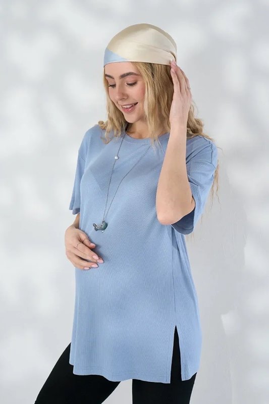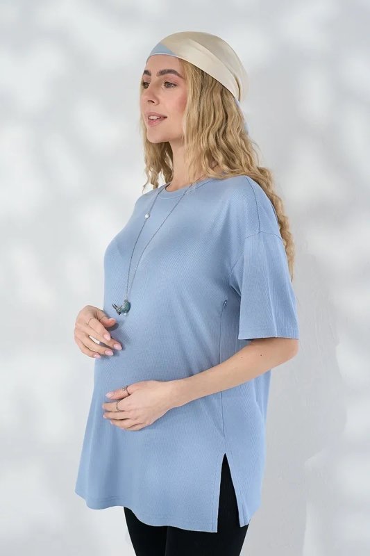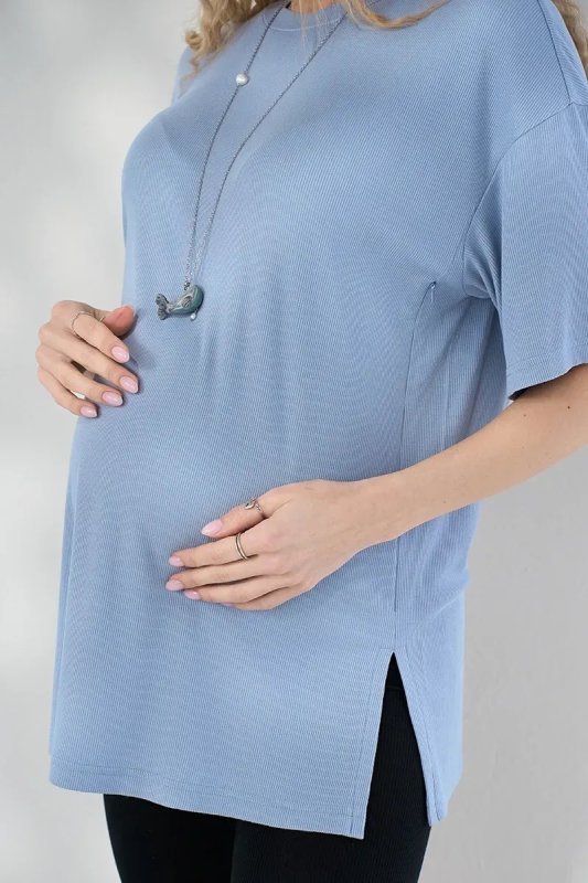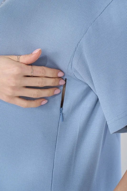 Туніка для вагітних та годуючих із трикотажу в рубчик Maily — блакитна