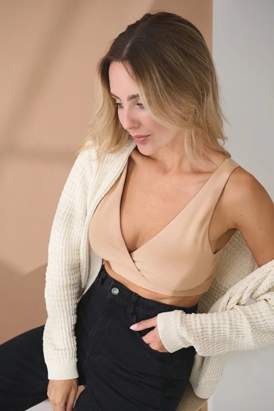 Зручний топ бежевого кольору для вагітних та годуючих Stefania