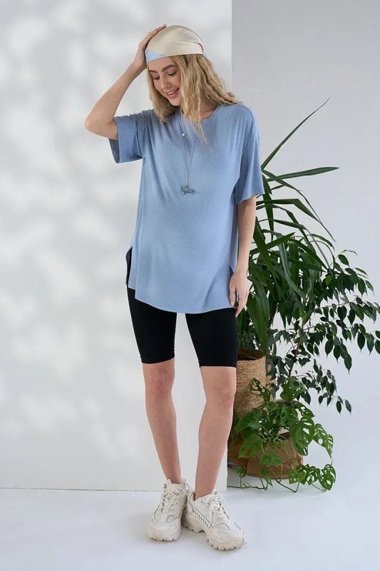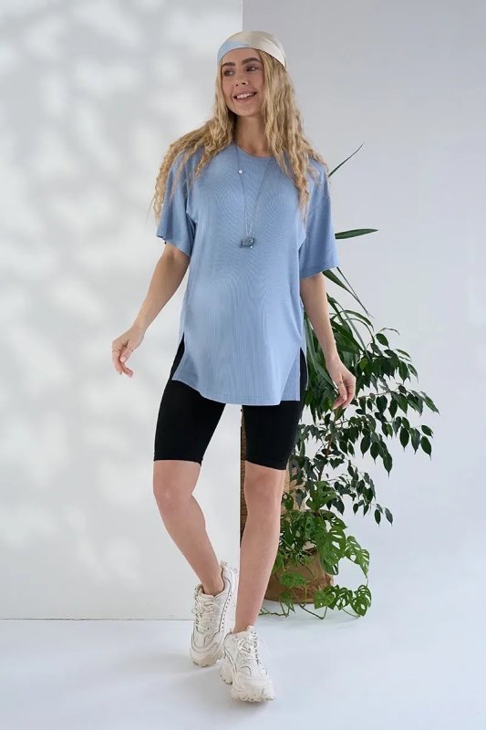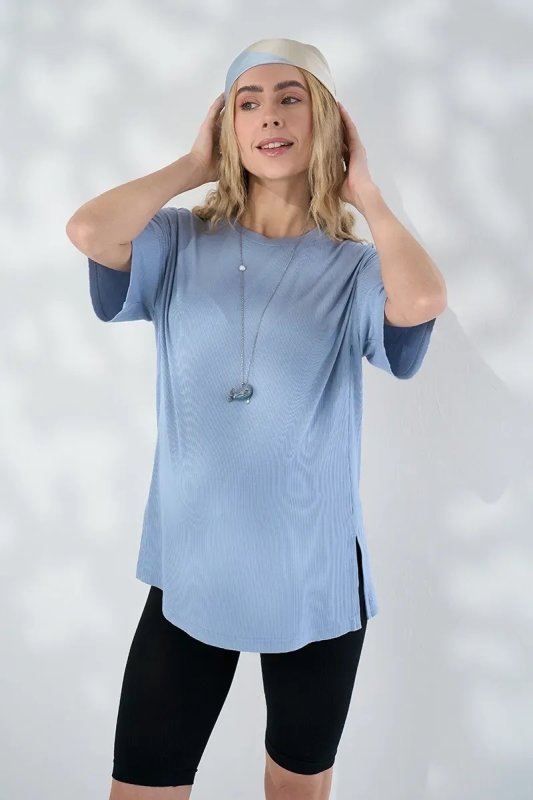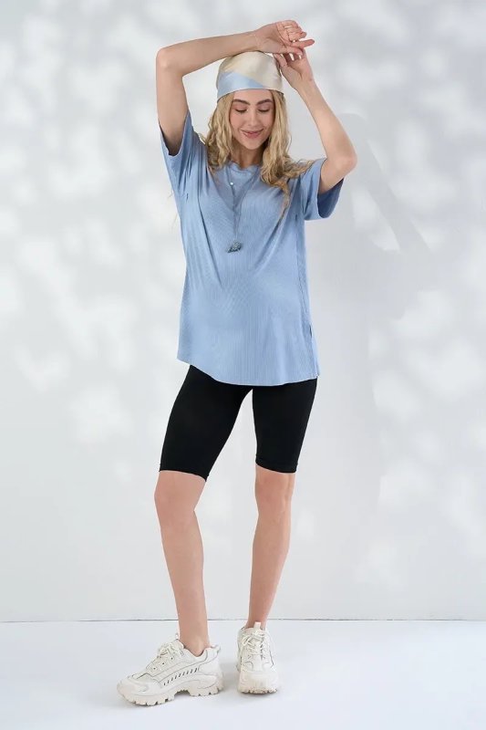 Матеріал Віскозний трикотаж у рубчик — надм'яка, приємна до тіла тканина з високою розтяжністю 35–40%. Не подразнює шкіру, дихає і повертається до початкової форми після розтягування. Ідеальна для активного повсякденного носіння.