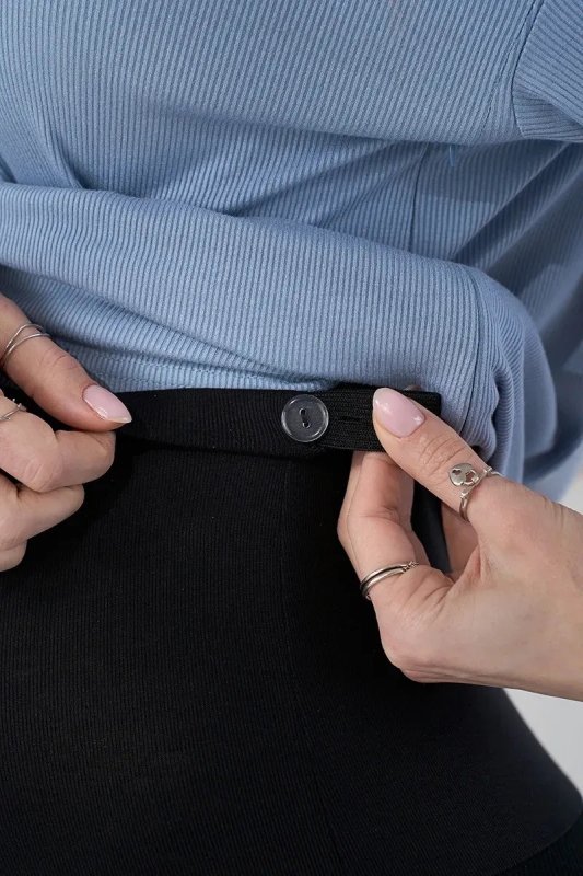 Крій і пояс Облягаючий силует акуратно підкреслює фігуру і комфортно сидить на будь-якому терміні. Високий пояс із гладкого трикотажу з регулюванням м'яко підтримує животик, не здавлює і підлаштовується під зміни фігури. Чорний колір — універсальна база, яка поєднується з будь-якими топами, туніками та сукнями.
