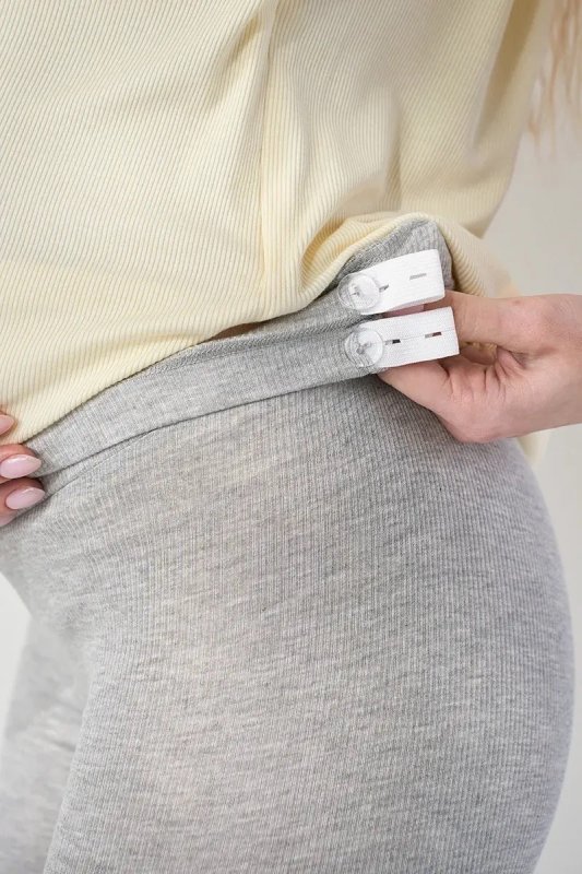 Крій і пояс Облягаючий силует акуратно підкреслює фігуру і комфортно сидить на будь-якому терміні. Низький пояс під животик із двома регульованими резинками м'яко підтримує живіт, не здавлює і підлаштовується під зміни фігури.