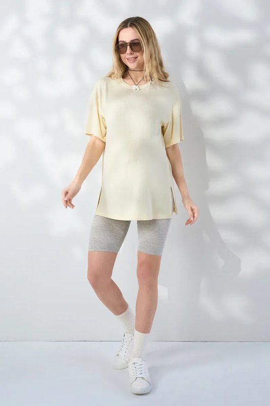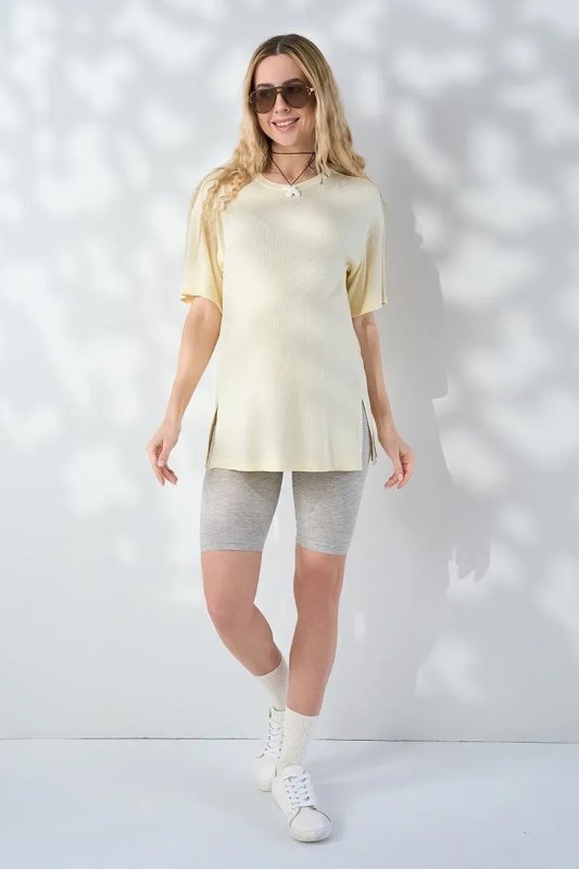 Велосипедки з продуманим поясом під животик, які комфортно сидять на будь-якому терміні вагітності. М'який віскозний трикотаж у рубчик ніжно обволікає тіло і не сковує рухів протягом усього дня.