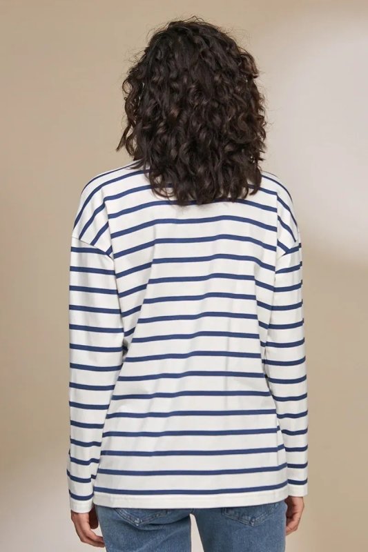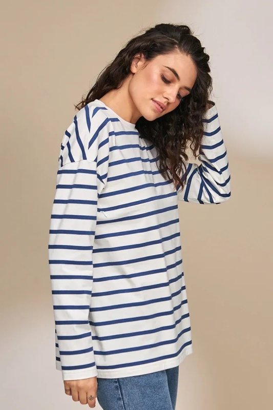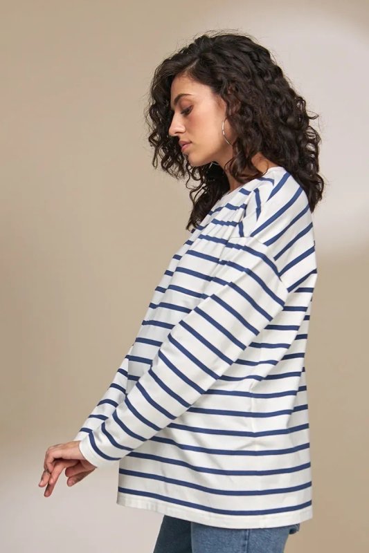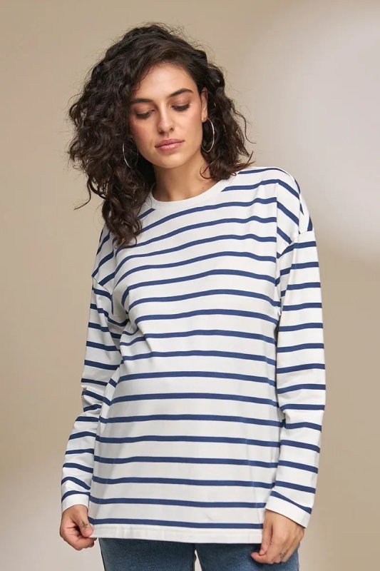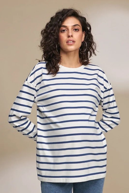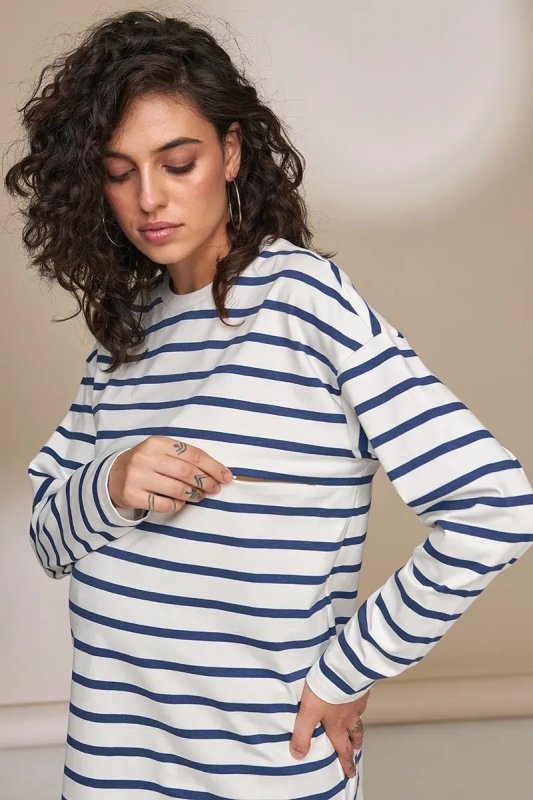 Лонгслив в сине-молочную полоску для беременных и кормящих Nikita